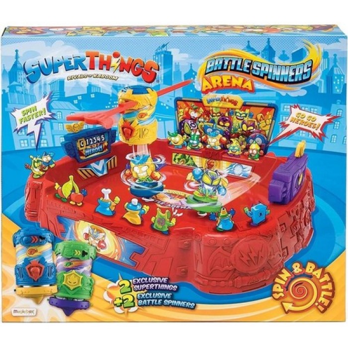 Τα Superzings επευφημούν τους συμμετέχοντες σε αυτήν την επική μάχη στην Battle Spinners Arena στην πόλη Kaboom. Μαζεύονται γύρω από το στάδιο προετοιμασμένοι για μάχη. 3, 2, 1… τα Battle Spinners περιστρέφονται με μεγάλη ταχύτητα, πλησιάζουν, φεύγουν, συγκρούονται μεταξύ τους!
