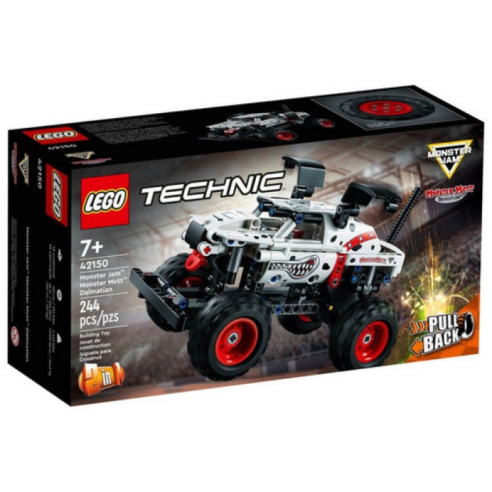 LEGO Technic Monster Jam Monster Mutt Dalmatian (42150). Είστε έτοιμοι να αυξήσετε τη διασκέδαση στην αρένα Monster Jam™; Ο Dalmatian LEGO® Technic™ Monster Mutt™ είναι εδώ για να διαγωνιστεί – και αυτό το άγριο κουτάβι είναι σοβαρό! Γι’ αυτό, δοκιμάστε τις ικανότητές σας. Χρησιμοποίησε το μοτέρ που τραβάει προς τα πίσω για να στείλεις το φορτηγό να τρέξει, και μετά κάνε επίδειξη με ωραία κόλπα και ακροβατικά. Όταν έρθει η ώρα για κάτι καινούργιο, ανακατασκευάστε το σε Φορτηγό αγώνων. Η συσκευασία περιέχει 244 κομμάτια.