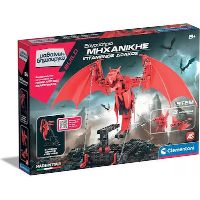 Ζήσε απίστευτες περιπέτειες με τον Ιπτάμενο Δράκο του Μαθαίνω και Δημιουργώ! Ένας αλυσοδεμένος δράκος που παλεύει να πετάξει, δίνει ζωή σε μια οπτική ψευδαίσθηση! Ως αποτέλεσμα της προέντασης (τάση + ένταση), ο δράκος φαίνεται να αιωρείται στον αέρα! Ο φανταστικός κόσμος και ο αγαπημένος χαρακτήρας του δράκου έχει συγκεντρωθεί σε ένα μοντέλο για συναρμολόγηση με σκοπό να σε φέρουν σε επαφή με μια νέα αρχή της μηχανικής, την προένταση. Ακολουθώντας το εικονογραφημένο εγχειρίδιο, καθώς και την εφαρμογή, θα ανακαλύψεις όλες τις τεχνικές πίσω από τον τρόπο που λειτουργεί η ένταση για να δημιουργήσει δομική ακεραιότητα ώστε ο δράκος να φαίνεται πως αιωρείται! Θα βρεις 1 μοντέλο προς συναρμολόγηση σύμφωνα με το εγχειρίδιο οδηγιών ή το APP και 2 μοντέλα προς συναρμολόγηση σύμφωνα με το APP. Το App είναι συμβατό με ANDROIDTM και APPLE και ΑΜΑΖΟΝ Κατασκευάζεται στην Ιταλία.