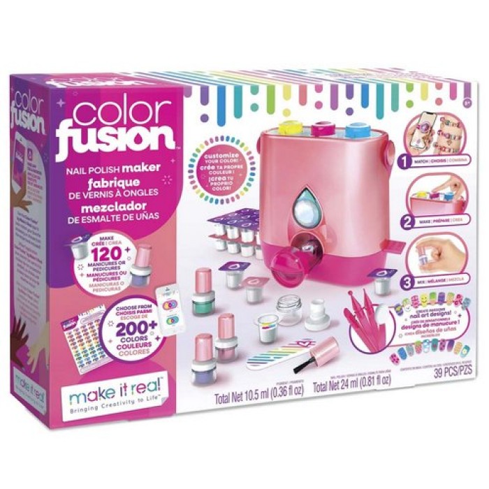 Φτιάξτε βερνίκι για 5 μανικιούρ ή πεντικιούρ ανά μπουκάλι. Το Color Fusion Nail Polish Maker παράγει πάνω από 200 προσαρμοσμένα χρώματα. Αυτό το σετ χρησιμοποιεί μια μη αρωματική φόρμουλα βερνικιού νυχιών με βάση το νερό. Έρχεται πλήρης με εργαλεία styling και καλλιτεχνική έμπνευση για τα νύχια.