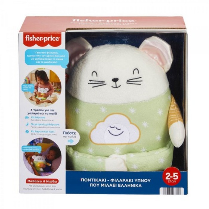 Λειτουργία ημέρας με 2 λεπτά οδηγιών για διατάσεις και ανάσες, που μαθαίνουν στα παιδιά να "ακούνε" το σώμα τους και να χαλαρώνουνΛειτουργία 20 λεπτών μόνο με χαλαρωτική μουσική και ήχους για να ηρεμεί το παιδίΜουσική και ήχους με διακόπτη έντασης που περιλαμβάνουν ήχους φύσης, θάλασσας καθώς και καταπραϋντικό λευκό θόρυβοΠαρέχει αίσθηση ασφάλειας χάρη στο γλυκό πρόσωπό του, τα απαλά υφάσματα και το απαλό φως, ενθαρρύνοντάς το παιδί να χαλαρώσει.Ο καθοδηγούμενος διαλογισμός με ασκήσεις διατάσεων και αναπνοής βοηθά τα νήπια και τα παιδιά προσχολικής ηλικίας να εστιάσουν την προσοχή τους. Ενώ η χαλαρωτική μουσική, οι δραστηριότητες διαλογισμού και το φως βοηθούν στην υιοθέτηση αυτοκαταπραϋντικών δεξιοτήτων.Πλένεται στο πλυντήριο ρούχων αφού αφαιρεθεί το ηλεκτρονικό μέρος που υπάρχει στο εσωτερικό του.