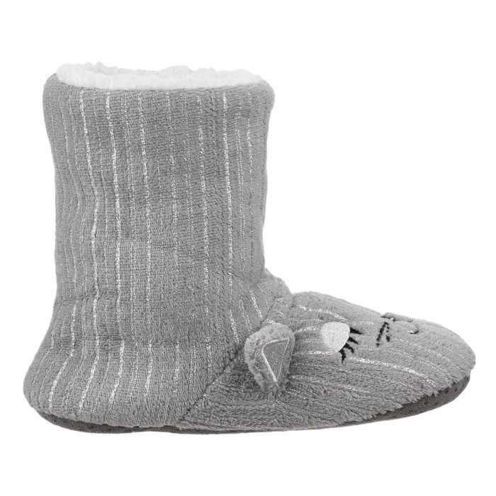 Καλτσομπότες Γυναικείες Χειμερινές Γκρι Αρκουδάκι Silver Glitter