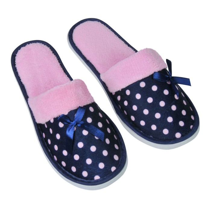 Παντόφλες Γυναικείες Μπλε Ροζ Πουά - 1 ζευγ.
