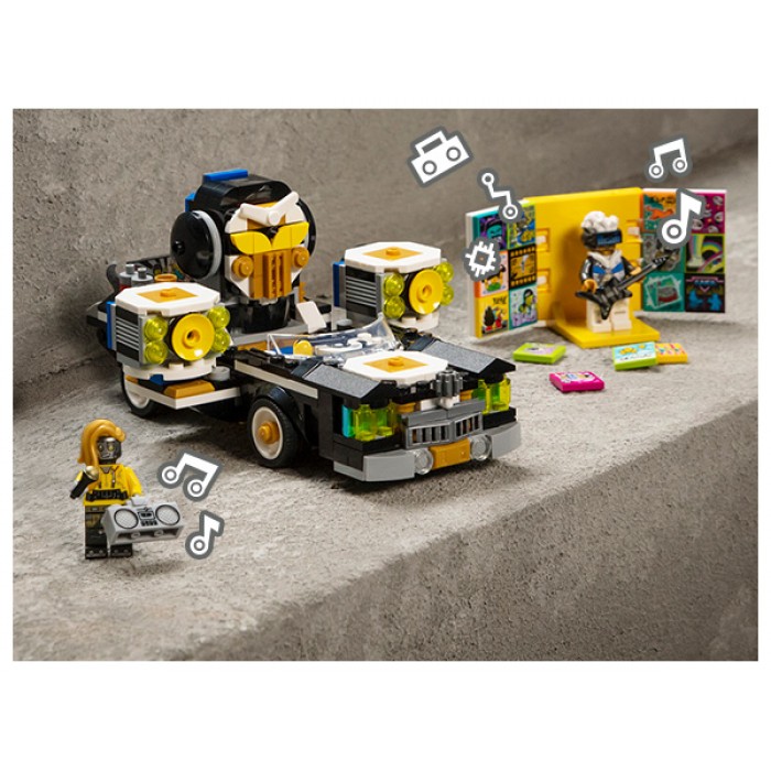 Σκηνοθέτησε και πρωταγωνίστησε στα δικά σου μουσικά βίντεο με το LEGO® VIDIYO™ Robo HipHop Car (43112). Χρησιμοποίησε την εφαρμογή για να δώσεις ζωή στο μοντέλο και στις μίνι φιγούρες μέσα στα βίντεό σου και δες τους 2 χαρακτήρες να δίνουν παράσταση πάνω στο αυτοκίνητο. Γύρισε τα κεφάλια, τα ηχεία και τα φώτα στο μοντέλο σου για να δεις διαφορετικές σκηνές να εμφανίζονται στο βίντεό σου. Κοινοποίησε τα βίντεό σου στην ασφαλή τροφοδοσία κοινωνικής δικτύωσης. Μετά, ρίξε μια ματιά στα παρασκήνια του μοντέλου!