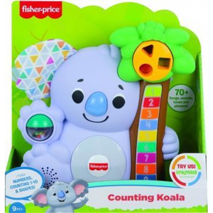 Fisher Price Linkimals Κοάλα Το Αριθμούλι (GRG62).Σκαρφαλώνοντας το φοινικόδεντρο με το φιλαράκι τους το Κοάλα, το μωρό κάνει μία απίθανη ανακάλυψη: αυτό το δέντρο έχει τετράγωνα, τρίγωνα και κύκλους! To Linkimals™ Κοάλα το Αριθμούλι της Fisher-Price είναι ένα εκπαιδευτικό ζωάκι με φωτάκια, τραγουδάκια και φράσεις που μαθαίνει στα μωρά αριθμούς και σχήματα.